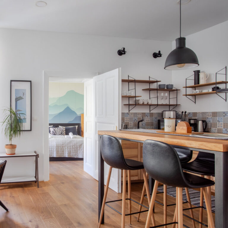 Maribor’s pedestrian zone. Just a step away from all the local attractions and shops. With a mix of apartments, this small townhouse features wooden floors, a modern palette and beautiful high ceilings.